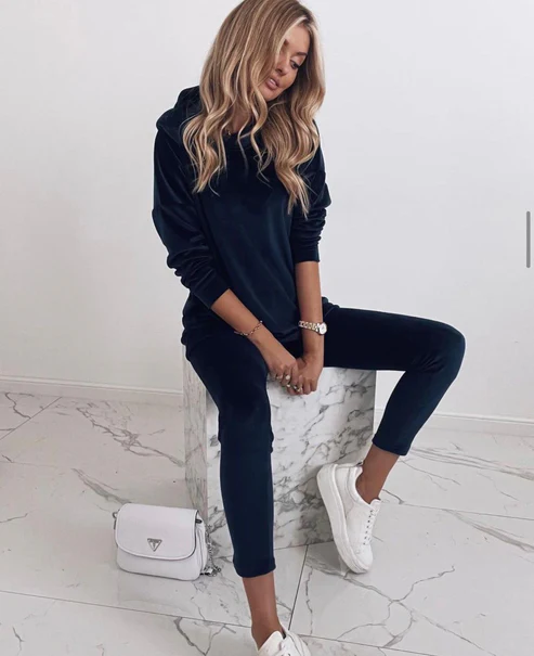 Trening Mellisa este un trening foarte comod. Ideal pentru acest sezon. Treningul Mellisa face parte din colectia premium de la Dama Fashion. Trening din doua piese, confectionat din catifea. Bluza lejera cu gluga, fara sistem de inchidere, cu buzunare aplicate frontal la pantalon, maneci lungi si pantalon cu talie medie, elastic in talie.